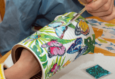Explora tu creatividad al pintar y dar vida a tus ideas, así como al renovar objetos para decorar tu hogar en nuestros talleres de pintura decorativa.