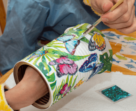 Únete a sesiones creativas en las que aprenderás técnicas mixtas y cómo hacer decoupage para embellecer tus objetos.
